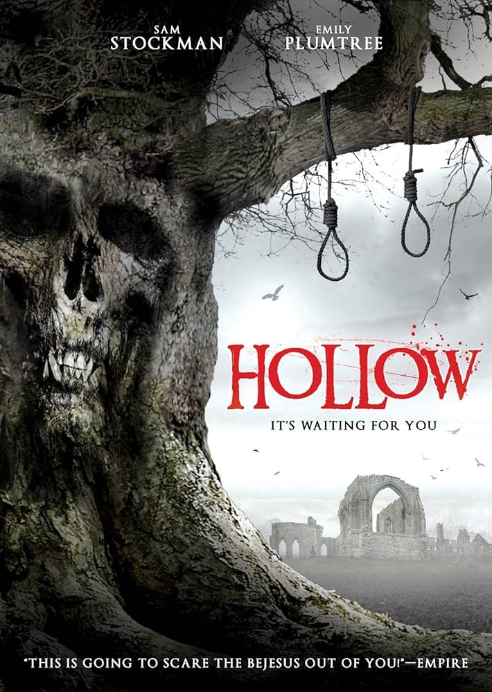 The film follows two young couples with a complex relationship. The success of this film rides on the relationship between these two couples, which become more complicated and enmeshed as the film goes on. One couple, played by Emily Plumtree and Sam Stockman, are set to be married. The other is a more strained relationship with the male played by Matt Stockoe harboring a crush on the female in the other relationship. The four venture into Dunwich to visit Emily’s childhood home, a trip she is not all too excited about. The film starts off as most found footage flicks do–with a lot of day-to-day stuff of couples having fun, trips in the car, casual conversation, and a lot of shaky camera work. Things get ominous very quickly, though, when they pass a tree that Emily claims is haunted. Legend has it that couples have hanged themselves from the tree’s branches and that it’s haunted by a hooded figure. The tree is spooky as hell, yet the couple find themselves drawn to it throughout the film, ending in a climax that takes place in a car in the dark that is absolutely terrifying.